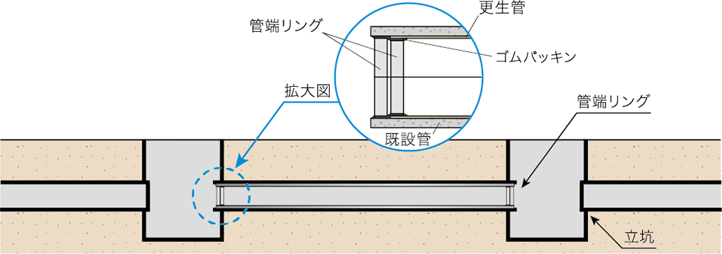 硬化後、シールパイプまたはHLパイプを管口で切断し、管端リングを装着して管口の処理を行います。